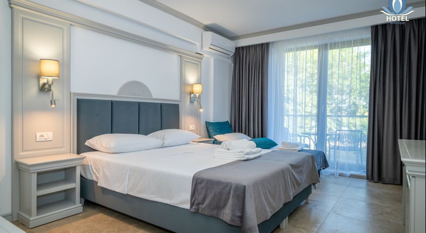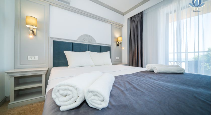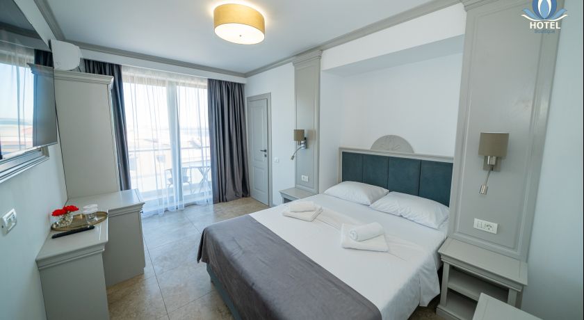 The rooms and apartments are stylishly furnished, with high-quality finishes and luxury amenities to ensure maximum comfort for all guests. The hotel’s privileged location in Eforie Sud offers immediate access to the beach and a peaceful setting, perfect for relaxation and escaping the hustle and bustle of everyday life. Surrounded by cozy terraces and souvenir shops, the area invites you to enjoy local flavors and bring home a piece of your seaside holiday. This makes the hotel an ideal choice for those who want to experience the beauty of the Black Sea in an elegant and comfortable environment.
